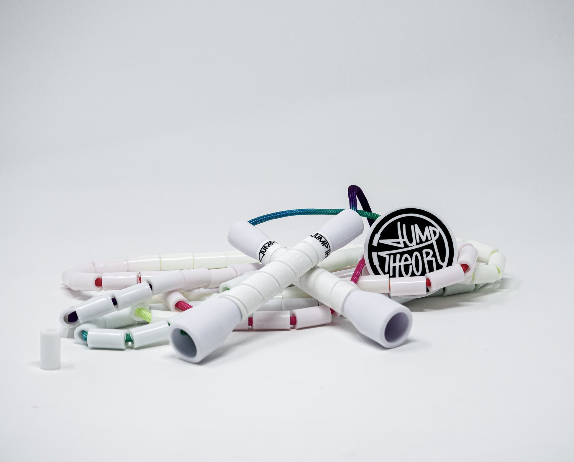 Jump Theory’s mission is to personify how difference brings us together. Jump into your own theory — there are no rules! A segmented jump rope captures how each segment is different, how they work together, stay connected, and help keep the rope inflow. This shines through in the jump rope community as there are so many different types and styles of jumpers — some technical, some flow, some acrobats, some advanced, and some beginners. We all work together to provide positive reinforcement no matter our predispositions, so please share and participate.